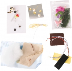 V paketu dobite vse potrebno: gradbene dele sobice, elemente opreme in dekoracije, lepilo ter podroben slikovni priročnik. Osvetlitev napajata 2× AAA 1,5 V in 3× LR54 1,5 V (baterije niso priložene). Priporočeno od 8 let. Končni model meri 17,1 × 13 × 11,6 cm; pakiranje 25 × 18 × 6 cm.