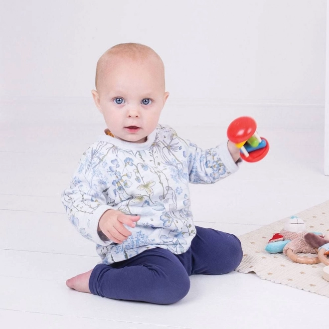 Mavrični valj Bigjigs Baby je brezčasna lesena ropotulja, ki navduši z živahnimi barvami in prijetnim zvokom. Trije barvni blokci se med kotaljenjem ali tresenjem gugajo in nežno trkajo ob opore, kar otroka motivira k nadaljnjemu raziskovanju, prijemanju in gibanju.