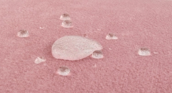Žametno mehak material CLEANABOO tekočin ne vpije takoj – razlite pijače ostanejo v kapljicah in jih je enostavno obrisati.
