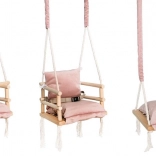 Z univerzalnim videzom v rožnati barvi se gugalnica odlično poda v otroško sobo in podpira skandinavski slog notranje opreme. Idealna je za mirno guganje in zabavo otrok, ki že znajo samostojno sedeti.