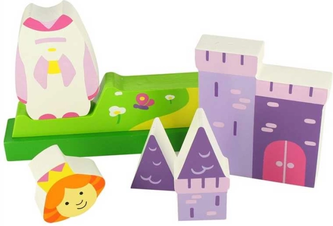 Set vsebuje 7 kakovostnih lesenih koščkov v živahnih barvah, ki ustvarijo čaroben grad s princeskino tematiko. Igrača spodbuja osredotočenost in potrpežljivost, hkrati pa je zaradi kompaktnih mer odlična tudi za na pot.