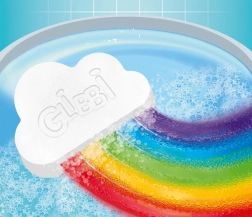Vnesite veselje in barve v otroško kopanje. Glibbi Boom mavrica po vložitvi v kad postopoma sprošča čudovit, večbarvni učinek, ki vodo spremeni v igrivo mavrično predstavo. Zabava brez kompromisov pri čistoči in varnosti.