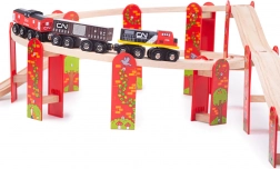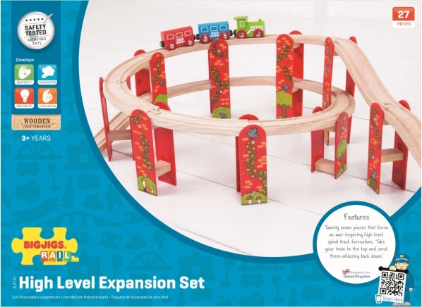 Predstavljamo vam Bigjigs Rail večnivojno leseno železniško gradbeno igračo – idealno za razvoj otroške ustvarjalnosti in motoričnih spretnosti. Zahvaljujoč kakovostnim in odgovorno pridobljenim naravnim materialom ta garnitura obljublja ure zabave in je združljiva z vsemi drugimi lesenimi železnicami na trgu.