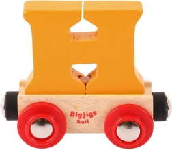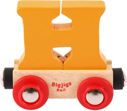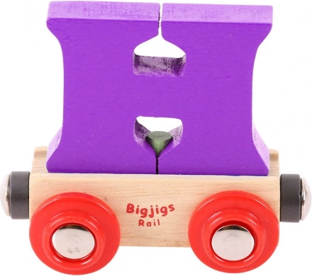 Ta barvit vagonček z odstranljivo črko H razširi vsako leseno vlakovno progo in omogoča sestavljanje imen, napisov ali voščil za rojstne dneve, godove in božič. Črka je odstranljiva in zamenljiva z ostalimi, zato lahko preprosto prilagajate sestave po potrebi.