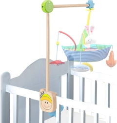 Trdna lesena konstrukcija zmanjšuje vibracije in zibanje, zato je vrtiljak varno obešen in v idealni višini nad dojenčkom.