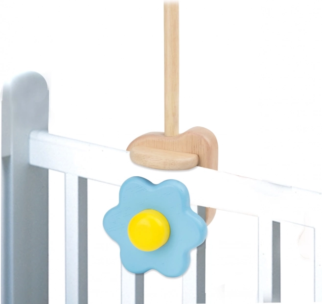 Eleganten lesen nosilec za obešanje otroškega vrtiljaka je zasnovan za hitro montažo in čvrsto pritrditev na ograjo posteljice. Masiven les zagotavlja stabilnost in dolgo življenjsko dobo, dekorativni element z rožico pa doda posteljici igriv videz.