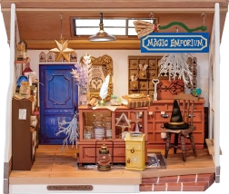 Vdahnite življenje prikupni trgovinici čarovnice Kiki in uživajte v urah ustvarjanja. Model v merilu 1:20 prinaša realistične prizore s pultom, poličkami in skrivnostnimi artefakti. Zahvaljujoč LED osvetlitvi diorama po mraku dobi edinstveno atmosfero in postane središče pozornosti v vašem interierju.