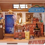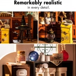 Sestavite svojo čarobno miniaturno trgovinico iz serije Mystic Archives in odkrijte svet poln detajlov. Ta DIY set Robotime Rolife ponuja preprosto sestavljanje z množico že pripravljenih delov, LED osvetlitev za večerno čarobno vzdušje ter desetine drobnih dodatkov – od napojev in kristalov do čarovniških knjig. Odlična darila za ustvarjalne duše in zbiratelje, ki se po dokončanju spremeni v vpadljivo dekoracijo.