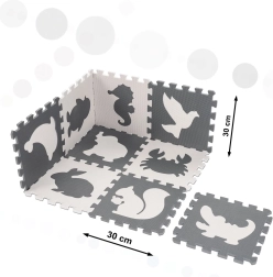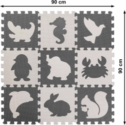 Pena otroška izobraževalna podloga puzzle živali, siva 85 × 85 cm, 9 kosov
