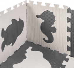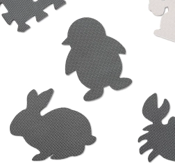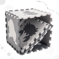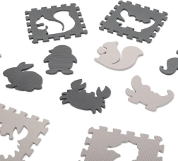 Ustvarite za svojega otroka varno in spodbudno mesto za igro. Ta EVA pena podloga je sestavljena iz 9 medsebojno povezljivih kosov z odstranljivimi oblikami živali ter ponuja mehak in blažilni površinski sloj, protizdrsno obdelavo in vodoodpornost. Nevtralna sivo‑ecru barvna kombinacija se odlično poda v vsak interier.