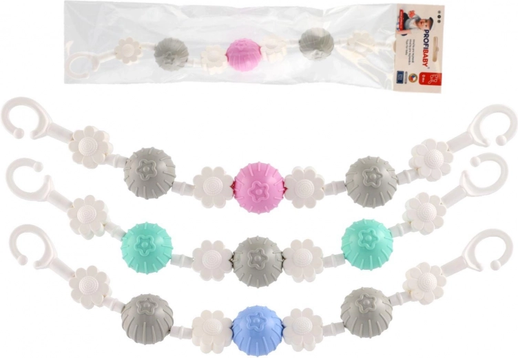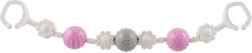 Dvojne trpežne sponke na koncih omogočajo hitro pritrjevanje na voziček ali posteljico ter zagotavljajo stabilen položaj igračke tudi med vožnjo.