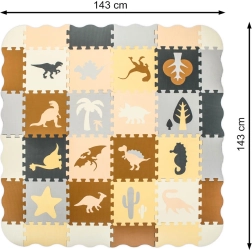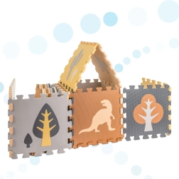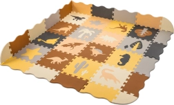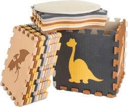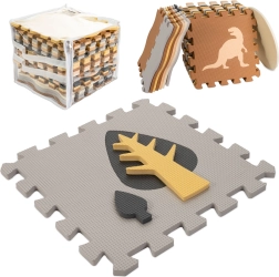 Podlogo lahko uporabite kot veliko igralno površino 143 × 143 cm ali sestavite ograjen prostor 113 × 113 × 16 cm. Mehka EVA pena blaži udarce, izolira pred mrazom in ne drsi. Material je preprosto čistljiv – dovolj je obris z vlažno krpo. Elegantna nevtralna paleta se poda sodobnim interierjem in lahko nadomesti preprogo v otroški sobi.