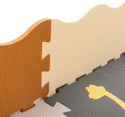 EVA pena debeline 1 cm duši padce in izolira pred hladnimi tlemi. Protizdrsna površina povečuje stabilnost pri igri in plazenju.