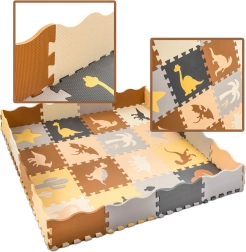 Ta penasta sestavljanka spodbuja otrokovo domišljijo in motoriko. Odstranljive oblike dinozavrov služijo kot zabaven sortirnik – otroci vadijo prepoznavanje oblik in koordinacijo pri vstavljanju motivov nazaj na svoje mesto. Kontrastne barve in prijetna, strukturirana površinska obdelava spodbujajo vid in tip.