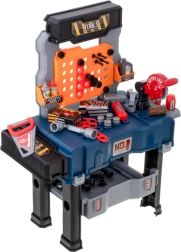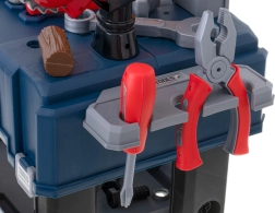 Ta prenosni kovček se zlahka razgradi v otroško delovno mizo z veliko odlagalnega prostora – od spodnje škatle za večje dele, prek perforirane stene za orodje, do dveh poličk in prostorne delovne plošče. Otroci se naučijo osnov ročnih spretnosti in varno preizkusijo dejavnosti, kot so »vijakanje«, »zabijanje« ali »rezanje«.