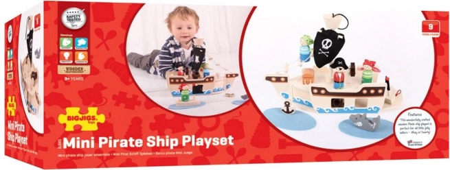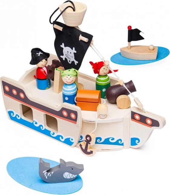 Ta leseni komplet piratske ladje vsebuje vse, kar mali pirati potrebujejo za svoje dogodivščine. Paket vključuje kapitana, dva pirata, ladjo, sidro, skrinjo z zakladom in morskega psa. Vse igralne elemente je mogoče praktično umestiti na ladjo, zato je idealno za potovanje in enostavno prenašanje.