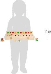 Ta kakovostna lesena motorična vstavljanka Small Foot je odlična izbira za razvoj otrokove fine motorike, logike in besedišča. Otroci kvadratne koščke z motivi ujemajo z ustreznimi odprtinami na drsnih ploščah ter se na igriv način učijo prepoznavati barve, like in predmete iz vsakdanjega življenja.