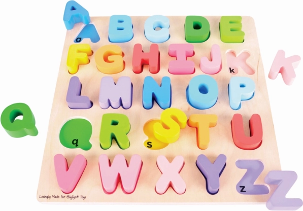 Velika lesena abeceda Bigjigs ponuja otrokom edinstveno priložnost za spoznavanje črk skozi njeno igrivo in izobraževalno funkcijo. Vsaka črka je veselo barvna, kar olajša prepoznavanje in pomnjenje. Puzzle je izdelan iz visokokakovostnih materialov, je varen in idealen za majhne otroške roke.