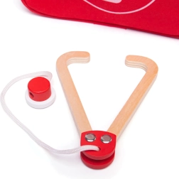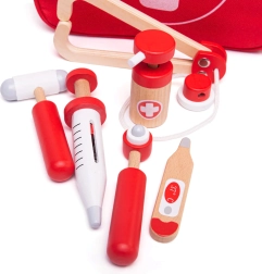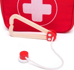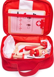 Set je izdelan iz materialov iz odgovornih virov in izpolnjuje aktualne evropske varnostne standarde. Zaradi lesenih delov, mehkih tkanin in gladkih robov je igra varna in prijetna. Odlična darila za male zdravnike od 3 let.