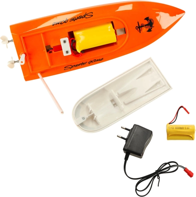 Model napaja Ni-Cd akumulator 3,6 V 500 mAh, ki se polni s priloženim omrežnim polnilnikom. Upravljalnik deluje na frekvencah 49/40/27 MHz in omogoča domet do 20 m. V kompletu najdete vse potrebno – le vstavite 2× AA bateriji v upravljalnik in se odpravite na vodo.