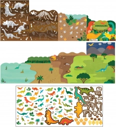 Ustvarjajte svoje lastne prazgodovinske zgodbe! Večkrat uporabne nalepke z dinozavrsko tematiko in obojestranska zložljiva scena otrokom omogočata znova in znova sestavljati nove kompozicije. Zahvaljujoč kompaktnim meram je komplet odličen sopotnik na potovanjih in za mirno igro doma.