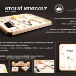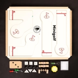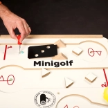 Namizni minigolf prinaša izvirno zabavo za otroke in odrasle. Štiri steze z ovirami na priseskih omogočajo poljubno razporeditev in neomejeno število kombinacij. Vsaka igra je drugačna, uri opažanje, potrpežljivost in fino motoriko. Zaradi robustnih materialov je idealen za pogosto igranje doma in v šolah.