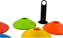 Praktičen set 50 trening stožcev v 5 izrazitih barvah za športni trening, šole in vadbo doma. Stožci so fleksibilni, odporni na vremenske vplive in imajo visoko vidljivost. Zahvaljujoč zložljivemu nosilcu in mrežasti vreči je prenašanje in shranjevanje maksimalno enostavno.