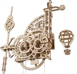 Ugears Aero so stenske mehanske ure iz kakovostne vezane plošče, ki jih sestavite sami brez lepila. Očarljiv pogled na odkrit urni mehanizem z nihalom in utežjo ponuja edinstveno izkušnjo natančnega inženirstva. Čas odčitavate z dvojnih številčnic, ki se vrtita v nasprotni smeri urinega kazalca, medtem ko dekorativni model toplozračnega balona redno naraste in se vsako polno uro znižanjem oglasi.