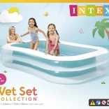 Družinski napihljiv bazen INTEX Swim Center je odlična izbira za vrt ali teraso. Zahvaljujoč dvema ločenima zračnima komorama je stabilen, udoben in hitro pripravljen za vodne užitke. Trpežna konstrukcija iz materiala debeline 0,30 mm in barvna izvedba zagotavljata dolgo življenjsko dobo in privlačen videz.