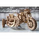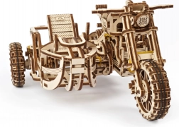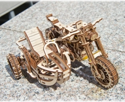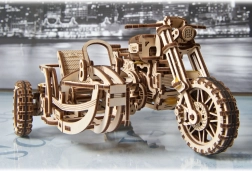 Po končanem sestavljanju dobite impresiven model motorja s stranskim priklopnikom, ki krasi polico in razveseli vsakega ljubitelja tehnike.