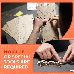 Sestavljanje je natančno in zabavno zahvaljujoč 400 natančno izrezanim delom in podrobnim navodilom. Model omogoča modularno povezovanje – združite dve do štiri steze in ustvarite sinhroniziran mehanski sklop, poln dinamike in tekmovanja s prijatelji.