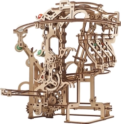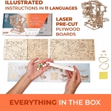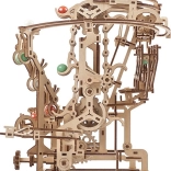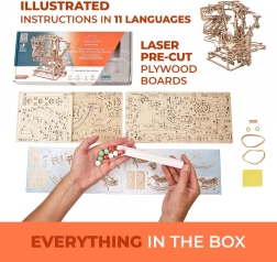 Odkrijte zabavo in tehnično eleganco s kompletom UGEARS – leseno mehansko kroglično stezo z verižnim pogonom. Ročni mehanizem požene barvne kroglice skozi tri edinstvene odseke z ovirami, medtem ko odprta konstrukcija omogoča občudovanje prenosov in zobnikov v akciji. Model lahko povežete z drugimi seti za še bolj veličastno stezo. Popolna izbira za ustvarjalne navdušence, ki imajo radi izzive in natančne lesene modele.