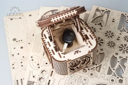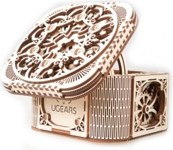 Elegantna lesena škatlica za nakit UGEARS je mehanska 3D sestavljanka, ki se sestavi brez lepila in po sestavi resnično deluje. Ponuja unikatno odpiranje, kakovostno izdelavo in gladko mehansko gibanje zahvaljujoč premišljenim zobnikom. Idealna za ljubitelje tehnike in oblikovanja, razvija motoriko in domišljijo ter služi kot izviren prostor za shranjevanje dragocenosti.
