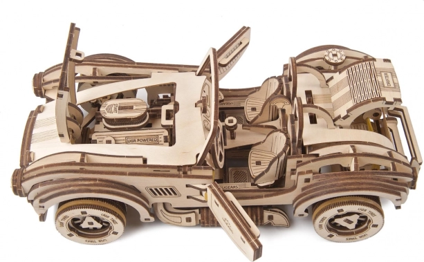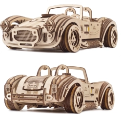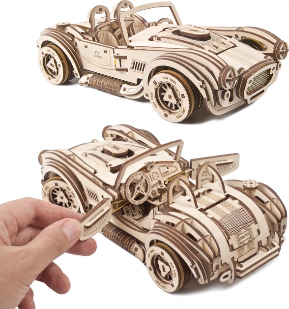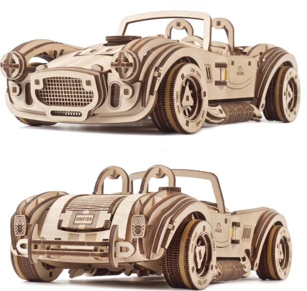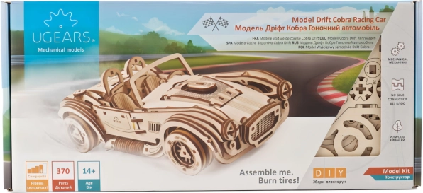 Uživajte v pristni izkušnji gradnje in vožnje. Lesena mehanska sestavljanka UGEARS Drift Cobra vsebuje 370 lasersko natančno izrezanih koščkov, ki se sestavijo brez lepila. Po sestavljanju dobite vodljiv model s funkcionalnim vzmetnim motorjem, krmilno zavoro in menjalnikom za prosti tek ter vzvratno prestavo.