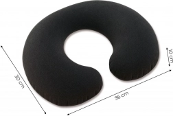 Konstrukcija iz trpežnega PVC v kombinaciji z nežnim velurjem na površini zagotavlja prijeten stik s kožo in večjo odpornost proti obrabi. Vzglavnik ima po napihovanju mere 36 × 30 × 10 cm, po izpraznitvi ga zlahka zložite v torbico ali ročno prtljago.