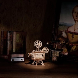 Ta lesen retro model projektorja navduši z dovršenimi prenosi, tuljavami in pristnimi detajli. Sestavite mehanizem korak za korakom, vstavite priložen filmski trak in uživajte v mini kinu doma. Zahvaljujoč ročnemu generatorju ne potrebujete baterij – dovolj je, da vrtite kljuko, in projekcija se lahko začne.