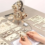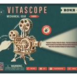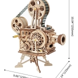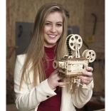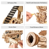 Mehanski prenosi, tuljave in patiniran videz spremenijo model v stilski okras. Idealno darilo za ljubitelje kinematografije, tehnike in 3D sestavljank.