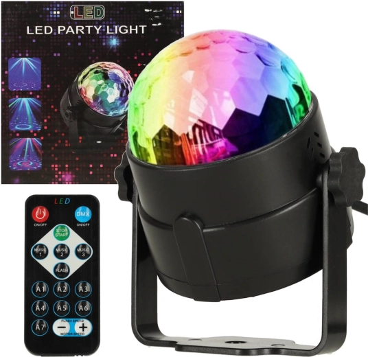 LED projektor uporablja večbarvne LED svetlobe za ustvarjanje dinamičnih svetlobnih učinkov, ki se spreminjajo glede na glasbo zahvaljujoč vgrajenemu zvočnemu senzorju. S možnostjo daljinskega upravljanja lahko enostavno spreminjate programiranje in učinke, kar zagotavlja maksimalno udobje.