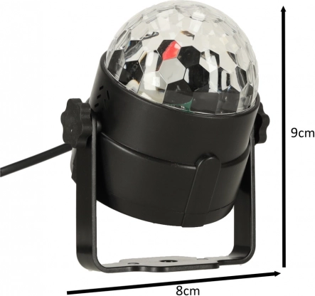 Disco krogla uporablja 3x1W LED, ki ustvarjajo široko paleto barvnih učinkov.