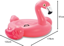 Velik napihljiv flamingo INTEX je odlična izbira za bazen, plažo ali jezero. Zahvaljujoč dvojni zračni komori in dvema robustnima ročajema nudi otrokom stabilnost in občutek varnosti pri igri v vodi. Namenjen je otrokom od 3 let naprej in z največjo nosilnostjo 40 kg brez težav prenese predšolskega ali mlajšega šolarja.