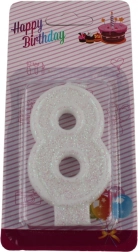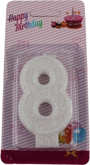 Elegantna rojstnodnevna svečka v obliki številke 9 z nežnim bleščanjem je popolna izbira za poseben trenutek pihanja želja. Zaradi čiste bele izvedbe in bleščic se odlično poda k različnim slogom tort in dekoracij.