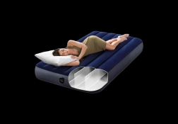 Uživajte miren spanec kjerkoli z blazino INTEX z višino 25 cm za udobno ležanje in lažje vstajanje. Konstrukcija z Dura‑Beam Fiber uporablja tisoče čvrstih vlaken, ki povečujejo stabilnost in odpornost proti ugrezanju. Prijetna velurjeva površina je mehka na dotik in je vodoodbojna, zato je enostavna za vzdrževanje.
