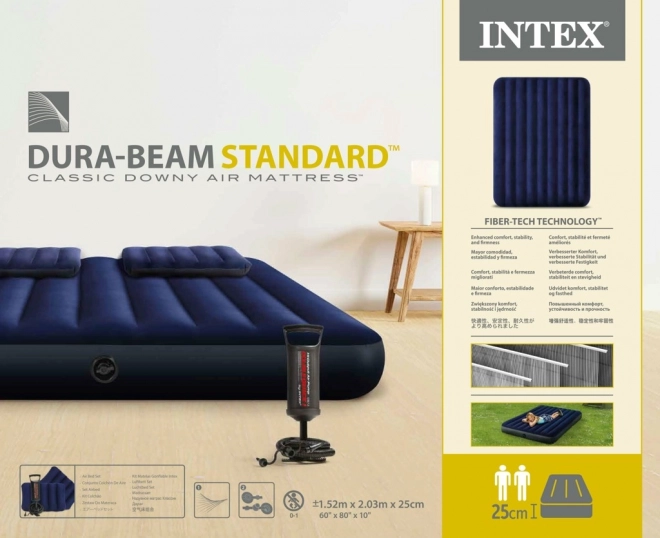 Praktična napihljiva vzmetnica INTEX za dve osebi ponuja mere 203 × 152 × 25 cm, mehak velurjev površinski sloj in stabilno konstrukcijo za udoben spanec doma in na poti. V paketu najdete ročno batno tlačilko, 2 napihljivi blazini in popravni obliž. Zahvaljujoč ventilu Boston je napihovanje in izpihovanje hitro in enostavno.