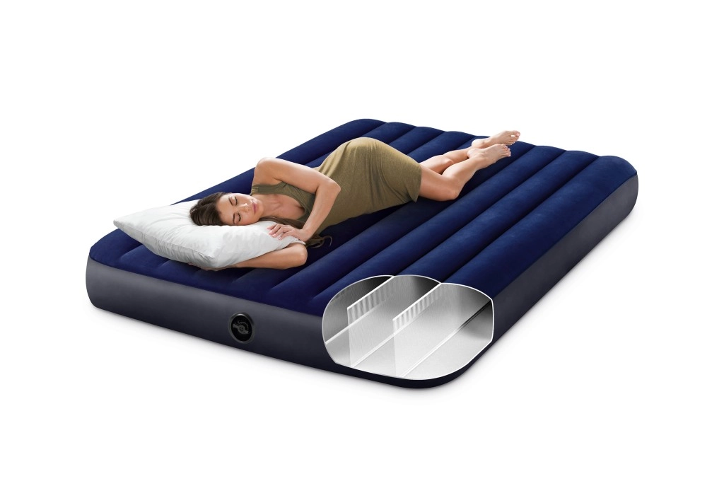 Uživajte v udobnem počitku na zakonski vzmetnici INTEX s prijetnim flockiranim (velurjevim) površinskim slojem, ki je na dotik mehak in pomaga, da rjuha ostane na mestu. Vzmetnica je izdelana iz odpornega PVC in se s svojimi merami odlično poda za goste, v avtodom ali za kampiranje.