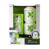 Odkrijte vesoljske dogodivščine s to vesoljsko postajo z lučmi in zvoki, ki ponuja dva nadzorna prostora, gibljive elemente in astronavta za akcijsko igro. Zahvaljujoč vesoljski sprehajalni vrvi, parkirnemu mestu za lebdeče plovilo ter možnosti »polnjenja« vozila iz drugega seta bodo otroci uživali ure ustvarjalne zabave. Priloženi sta 2× AA bateriji.