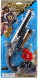 Poleg pištole in daljnogleda komplet vsebuje tematske dodatke, kot so kompas, kovanci in preveza za oko, za še bolj privlačno igro vlog.