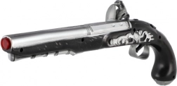 Dekorativna igrača pištola z gravurami in vidno rdečo konico za varno igro doda vsakemu piratskemu podvigu pravi šarm.
