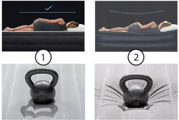 Integrirana nožna črpalka omogoča enostavno napihovanje brez elektrike. Vzmetnico je možno dodatno napihniti tudi z običajno črpalko preko ventila.