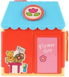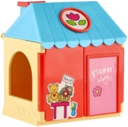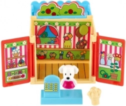 Vesela hišica z motivi cvetja in blagajno uči otroke kombinirati barve, aranžirati ter skrbeti za stranke.