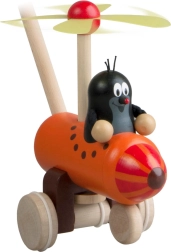 Rolarka Krtek je zabavna in varna lesena igrača za majhne otroke. Propeler se vrti med premikanjem, kar spodbuja otrokovo domišljijo in motoriko.